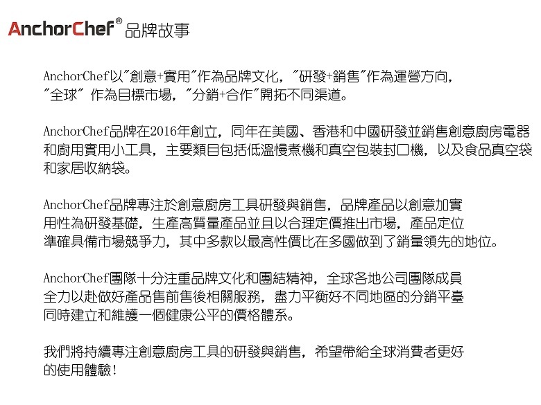 1. 詳細請參閱Anchorchef機器使用說明或以下影片: