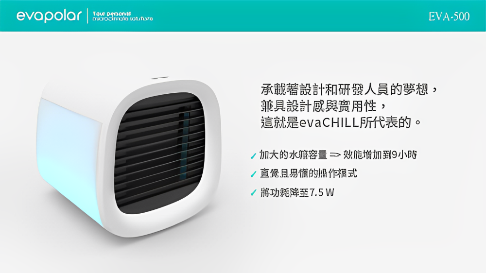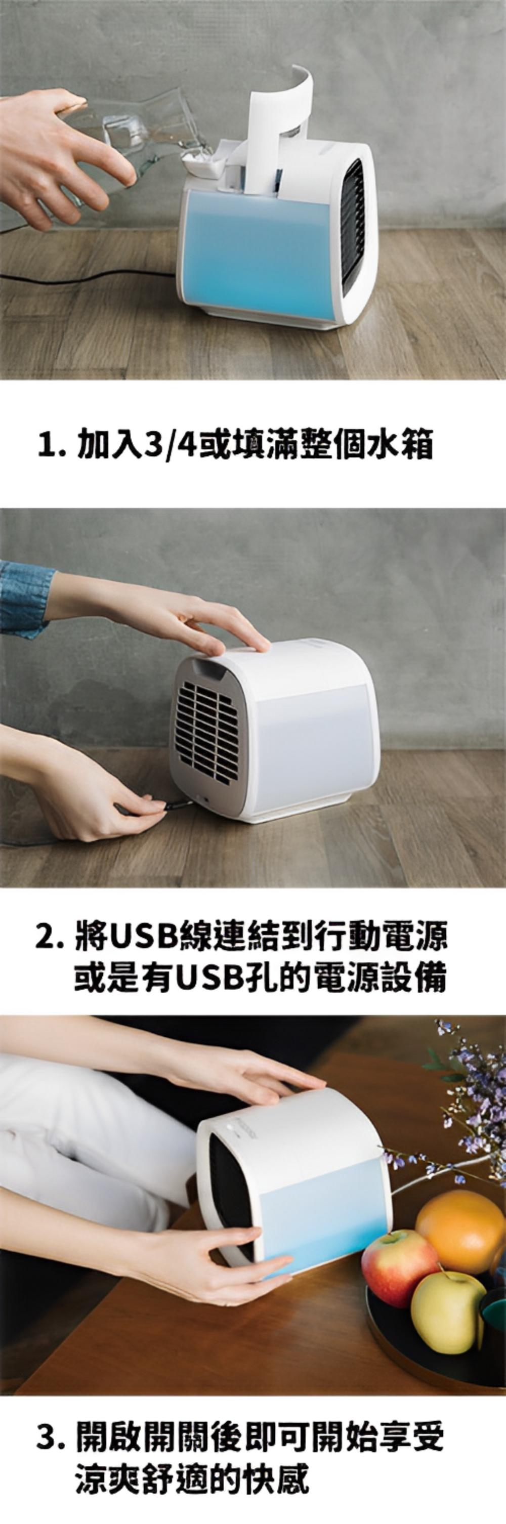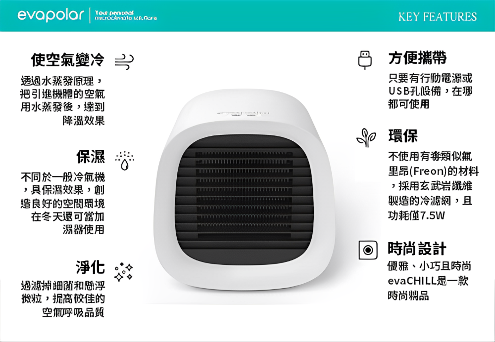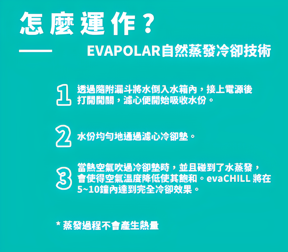 .內容物:evaCHILL 第三代隨身個人冷氣機*1 (附漏斗、濾心、USB Type-C線)