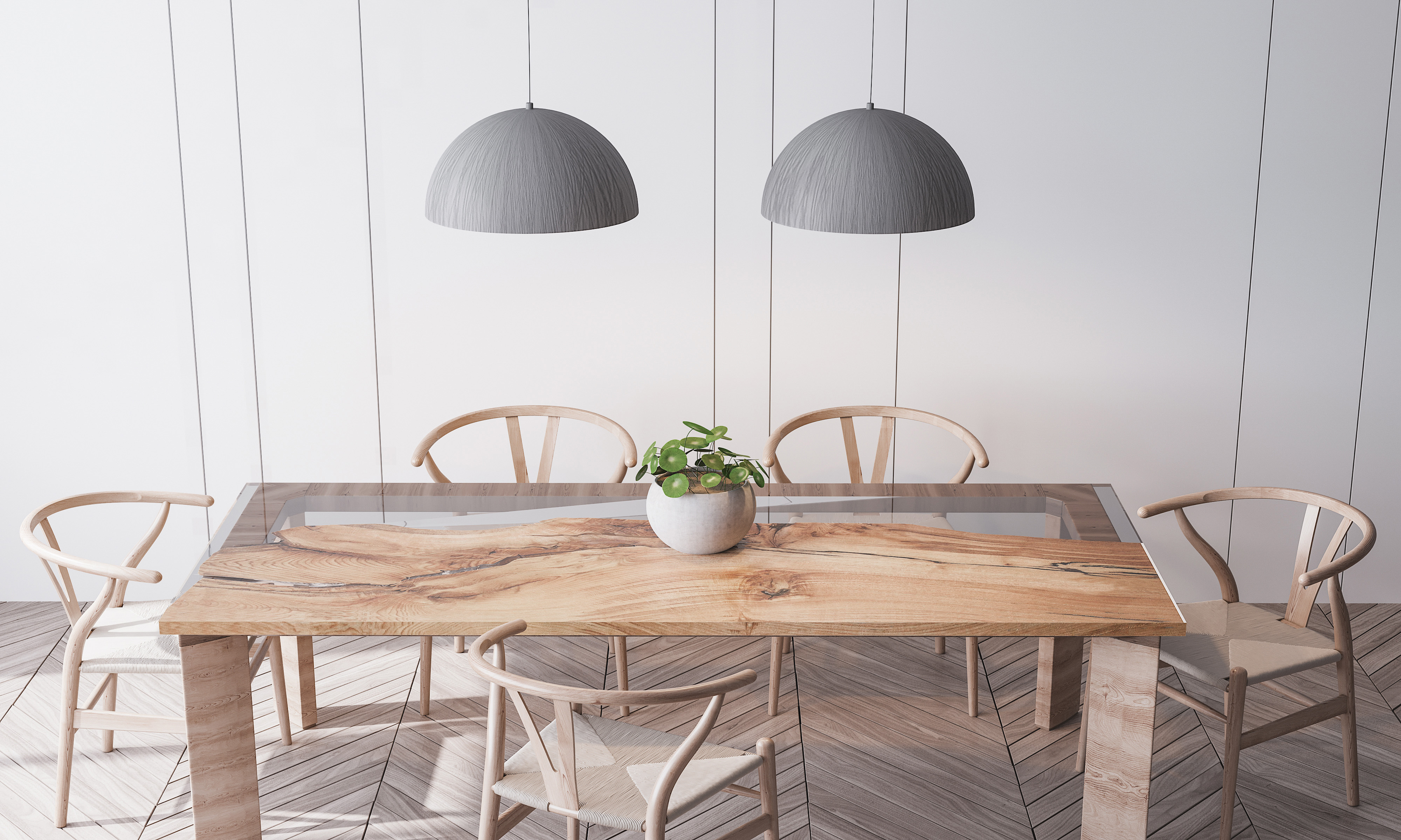 純實木大板直拼,有序選板 木紋連續美觀,桌板穩定耐用。