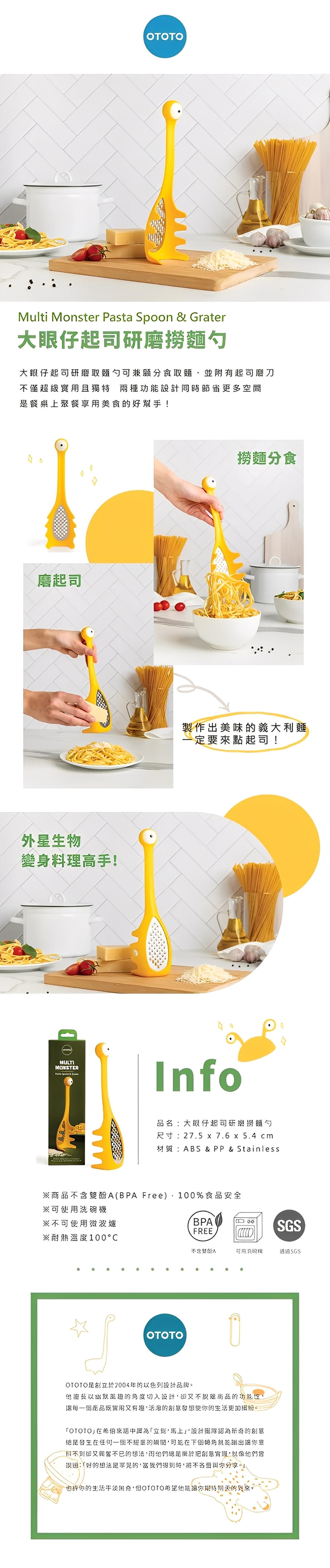 .大眼仔起司研磨取麵勺可兼顧分食取麵、並附有起司磨刀