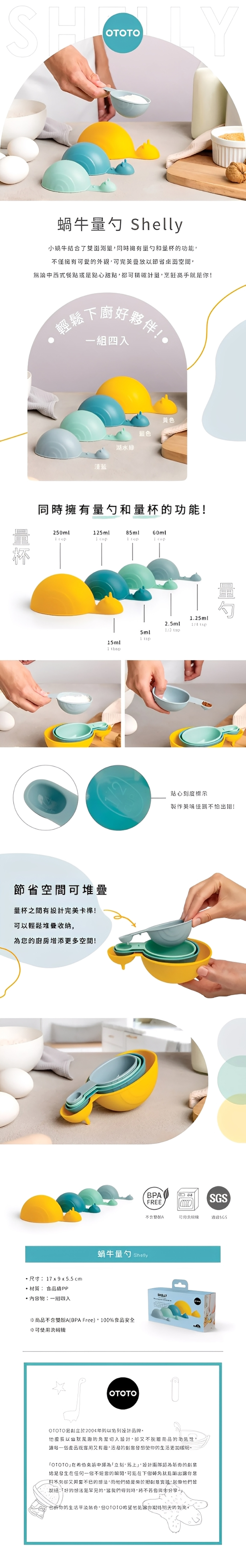 .小蝸牛結合了雙面測量,同時擁有量勺和量杯的功能。