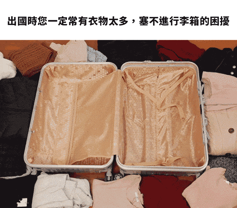 .壓縮超過50%的空間,高效解決您行李箱空間不足的困擾。