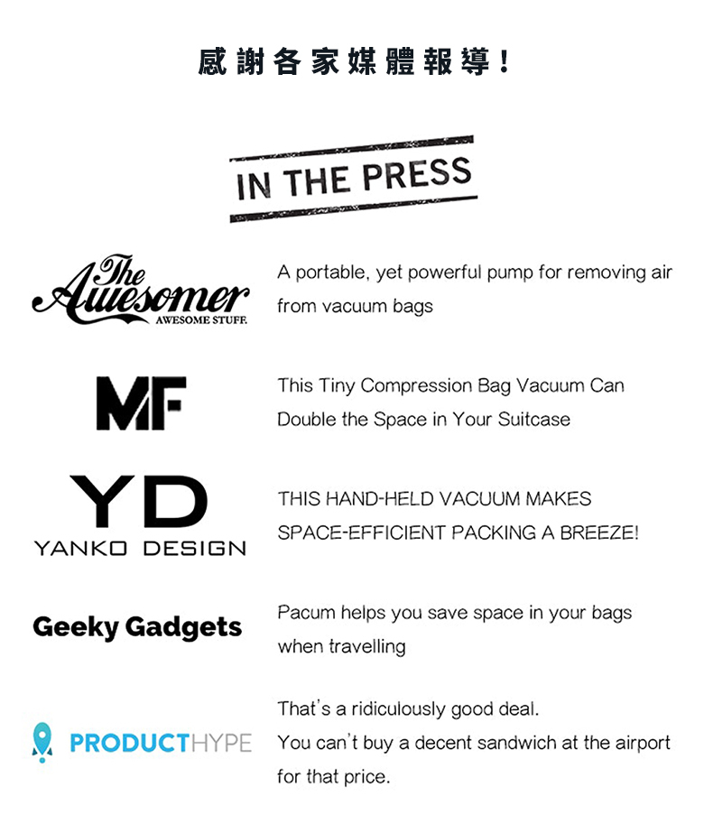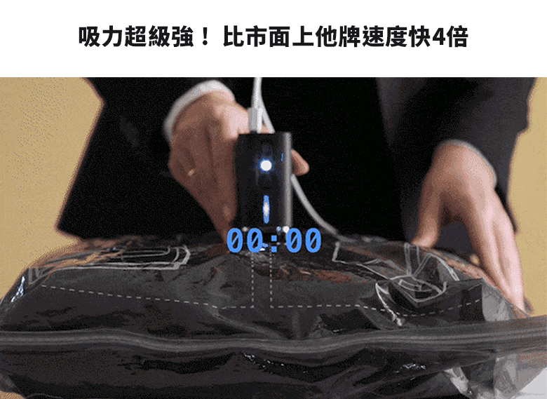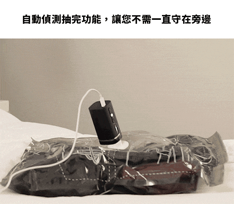 2.抽氣壓縮時間會隨著真空袋裡面衣物多寡,而有增減 (衣物越多所花時間越長)。