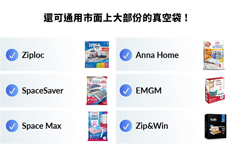 .內容物:極致真空多功能收納機*1 + 耐用真空袋小*3 + USB type-c線*1 + 萬用抽氣轉接頭*1+ 充氣輔助器(球針+泳圈)*3