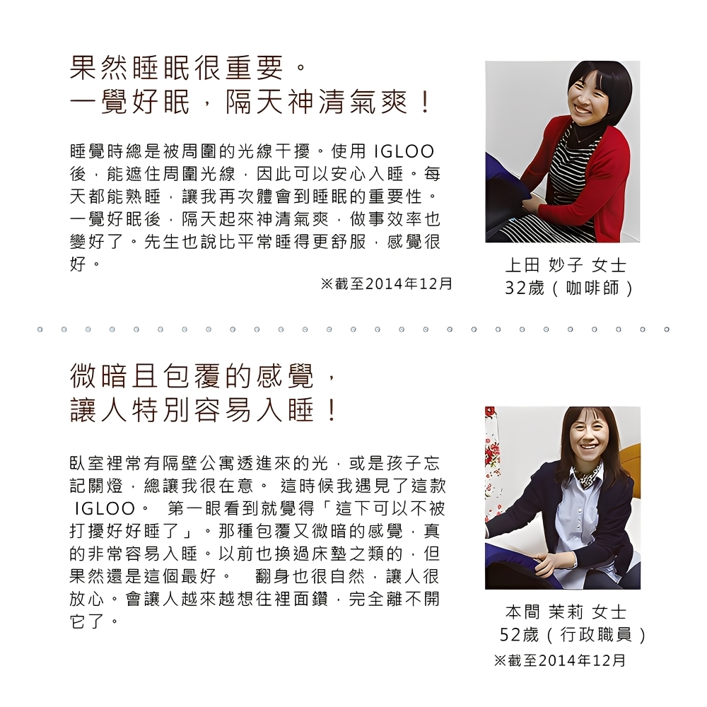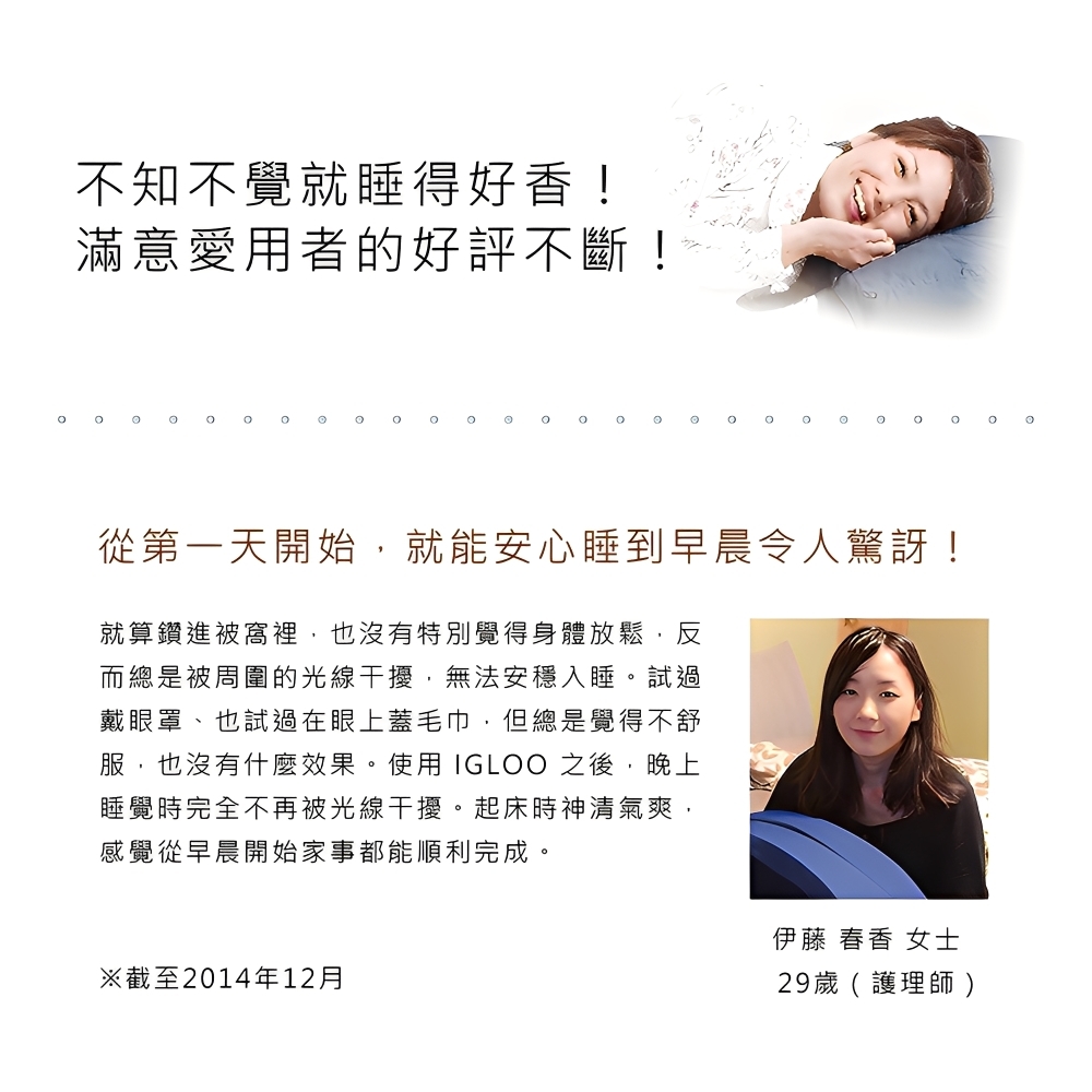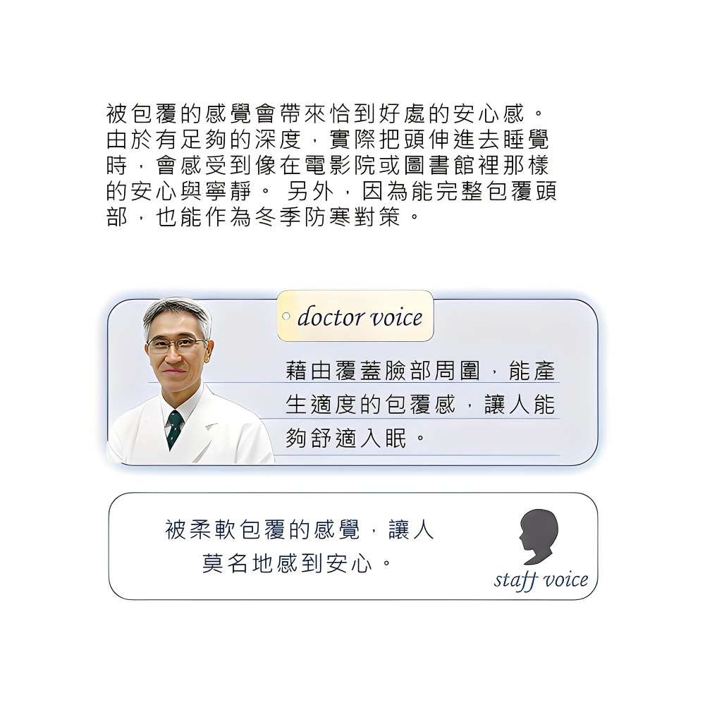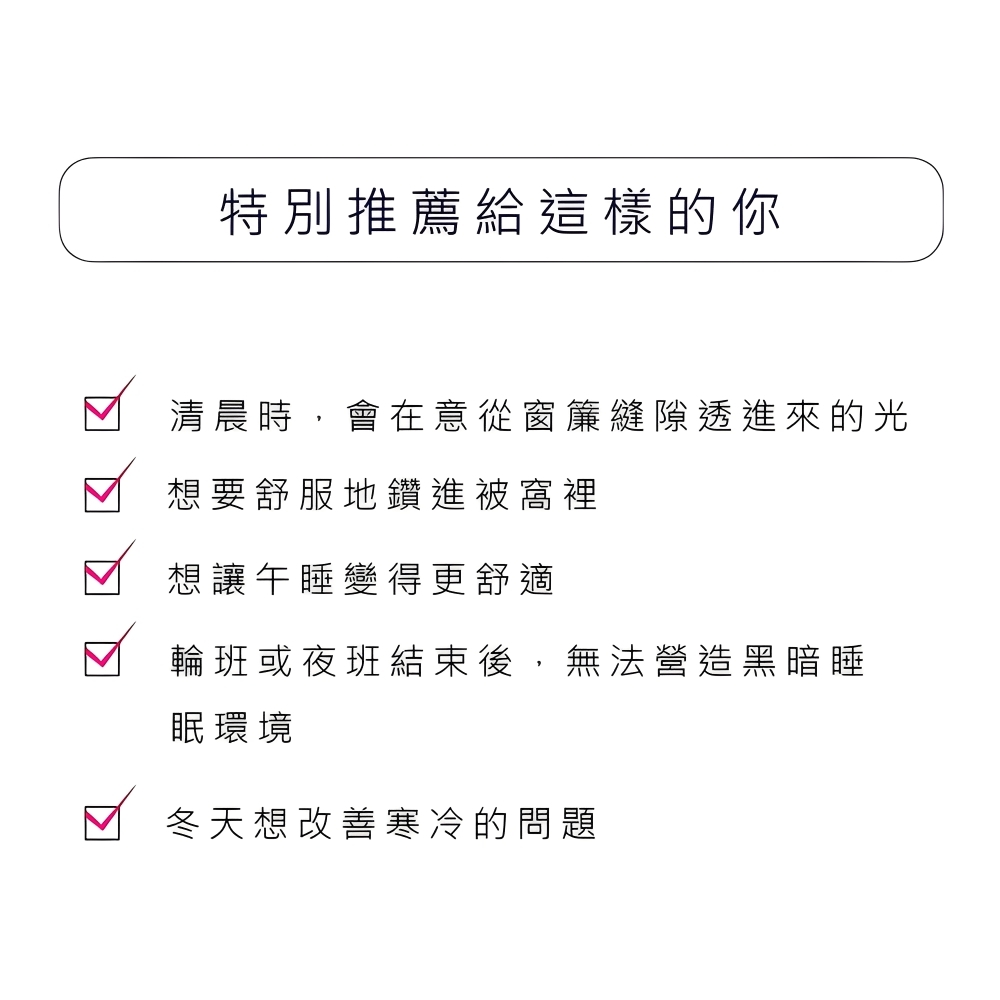 .提升睡眠品質:結合「靜音 + 遮光 + 包覆感」這三個要素,打造更能助眠的環境。