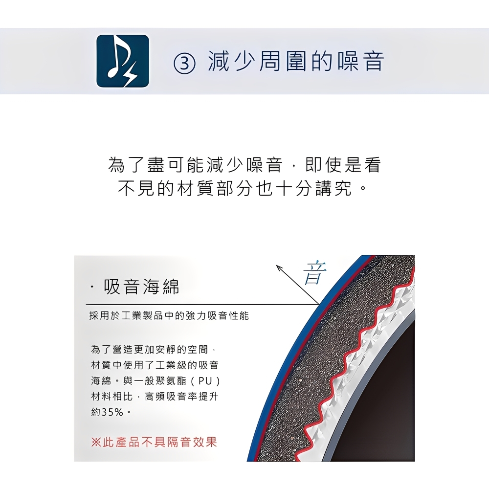 .降噪 / 吸音結構:採用特殊結構與吸音材質,比一般泡棉具更高的吸音性能。