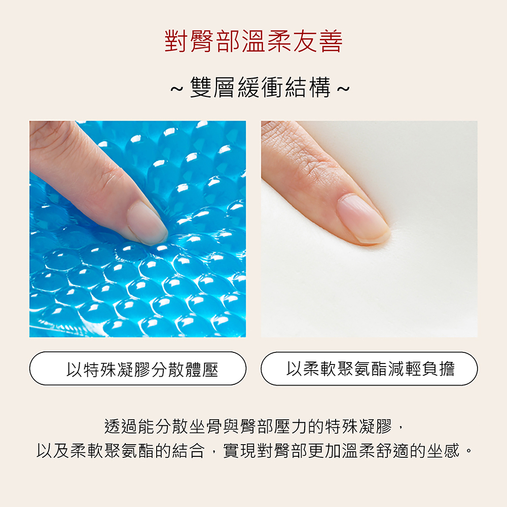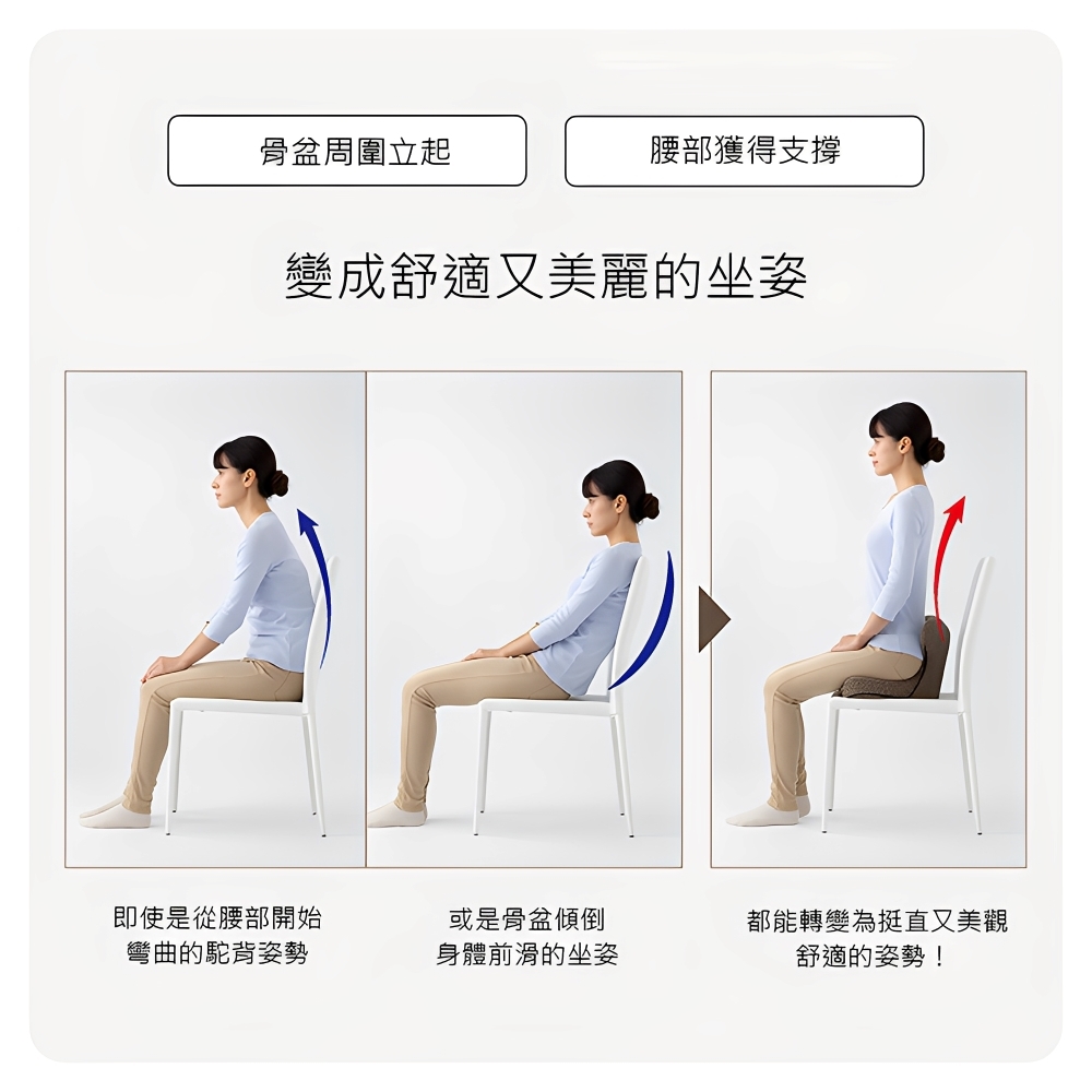 .坐骨與骨盆穩定,減輕久坐壓力。
