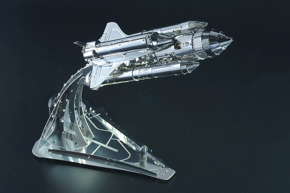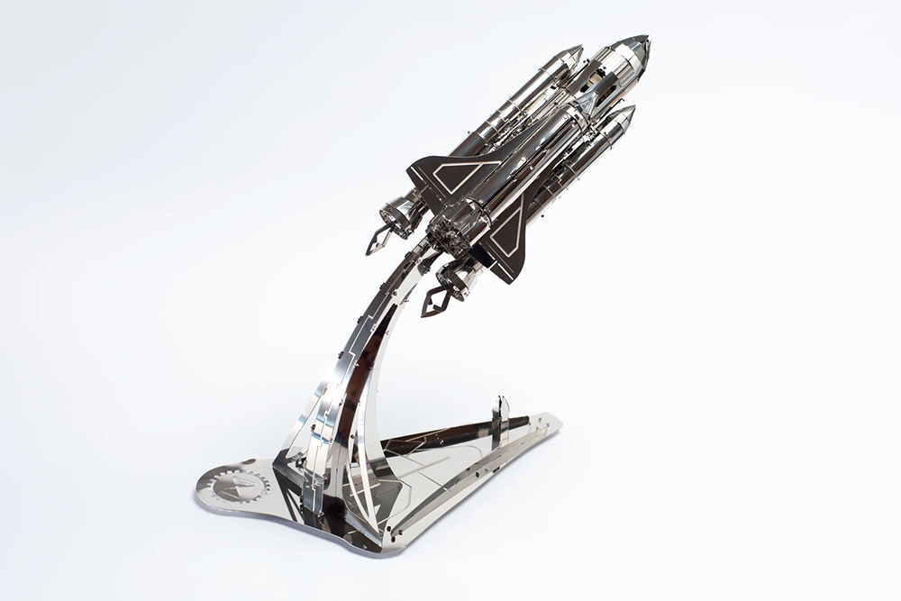 追星太空梭的貨艙中有一個滑門,可讓太空梭和火箭推進器分離;太空梭體和推進器能自由於支架上裝載或卸下,整體亦能於支架上旋轉,搭配射架弧度彷彿發射後衝向太空。射架邊緣模擬美國佛羅裡達州甘迺迪太空中心旁的卡納維爾角(Cape Canaveral)海岸線形狀。