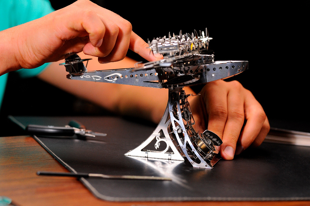延續這位鋼鐵紳士的奢華和復古優雅!輕輕地將零件從金屬片上一塊塊地取下來,感受金屬在你手中變得柔軟如塑料,也感受它形狀的改變和尺寸的調整,最後形成你自己的傑作!