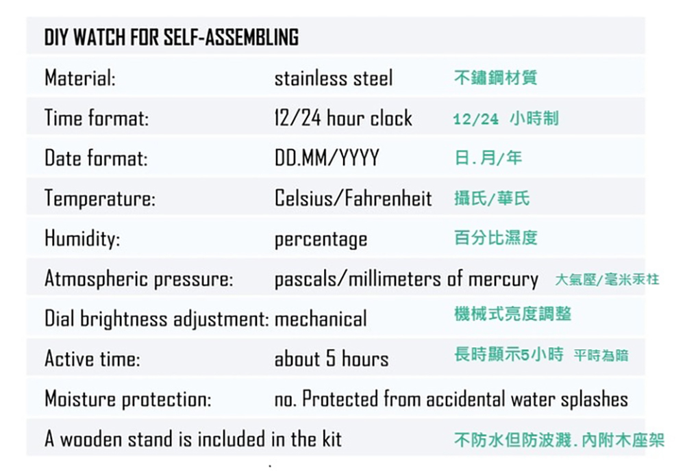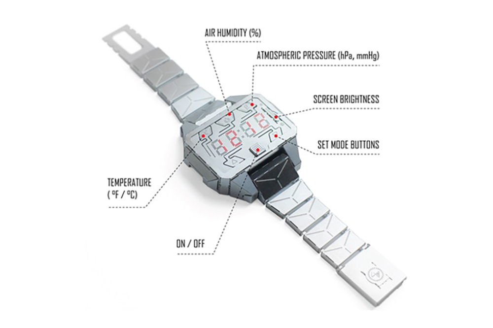 時間領航者開發初期體積大的多,經過不斷改良讓此款手錶戴在腕上已具高舒適性;此外,它有種特別觸感,觸摸它會帶來不一樣的樂趣。模型的主體很容易組裝 – 帶有指示燈的板子、用於充電的mini USB插槽,及套件按鈕等,而你不只是一位組裝者,還是創造者,因為你讓這只腕錶的機身和鍊帶從平面變為3D型塑出來,然後放入它的心臟讓它有了生命!