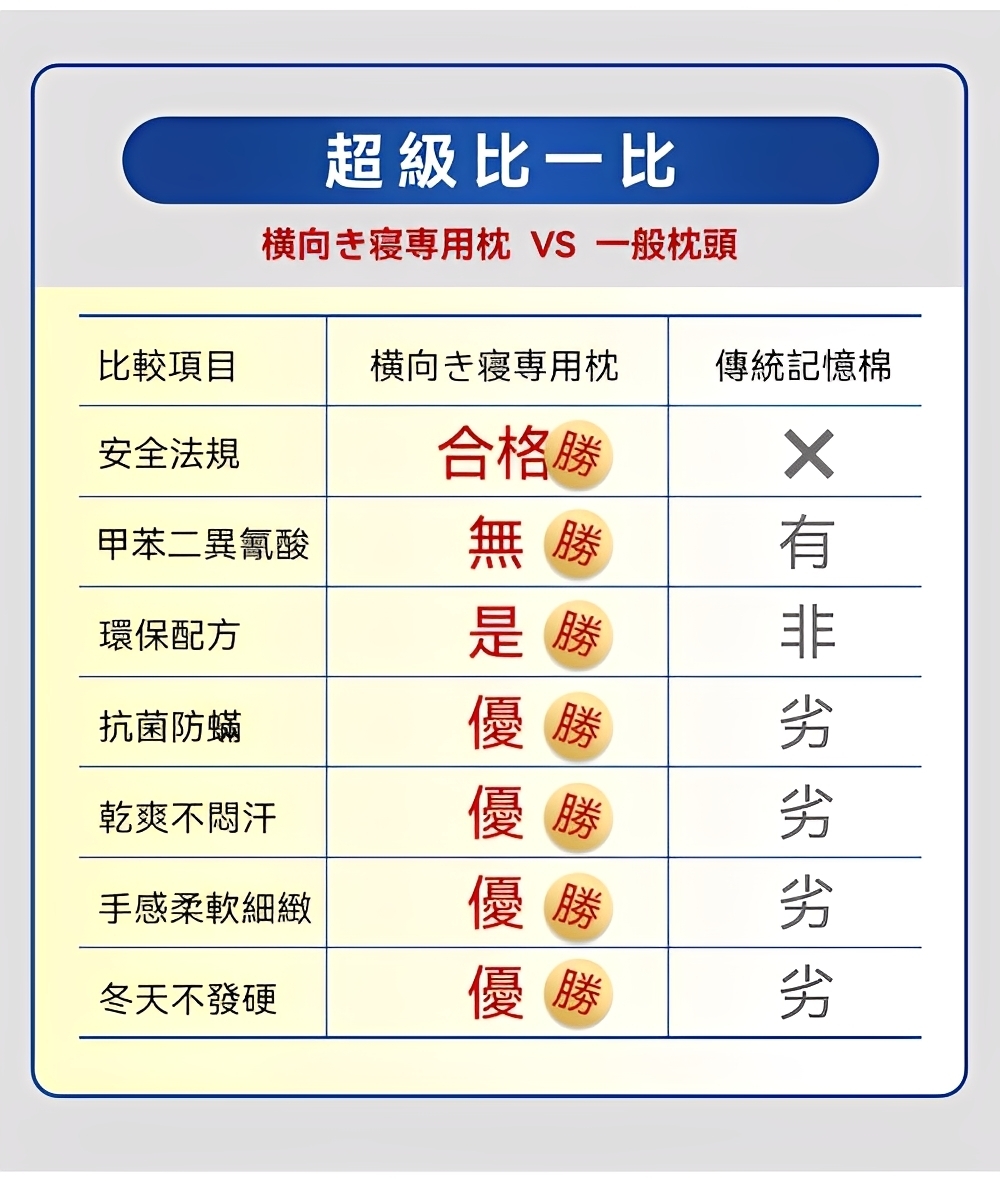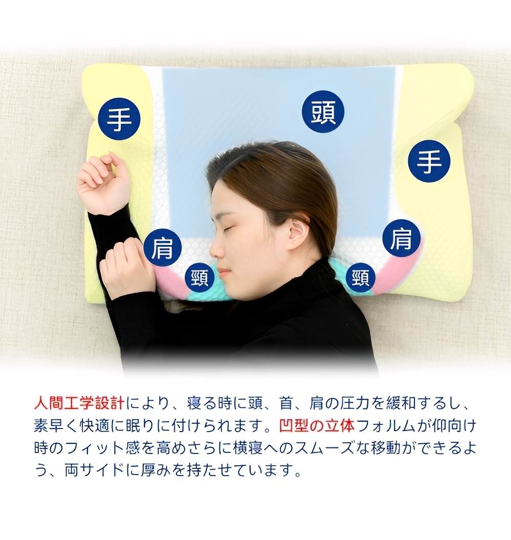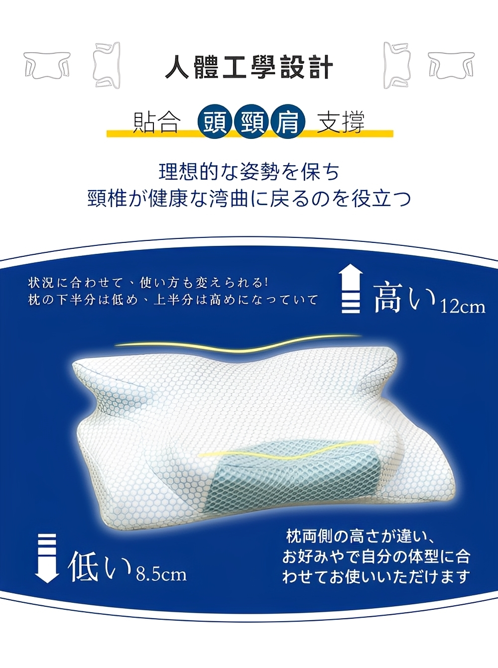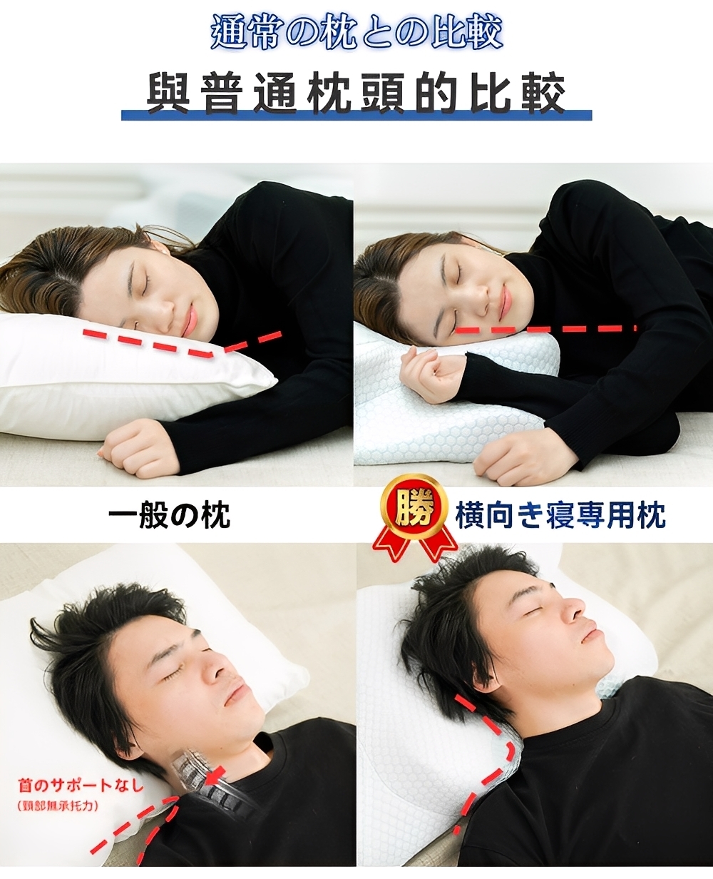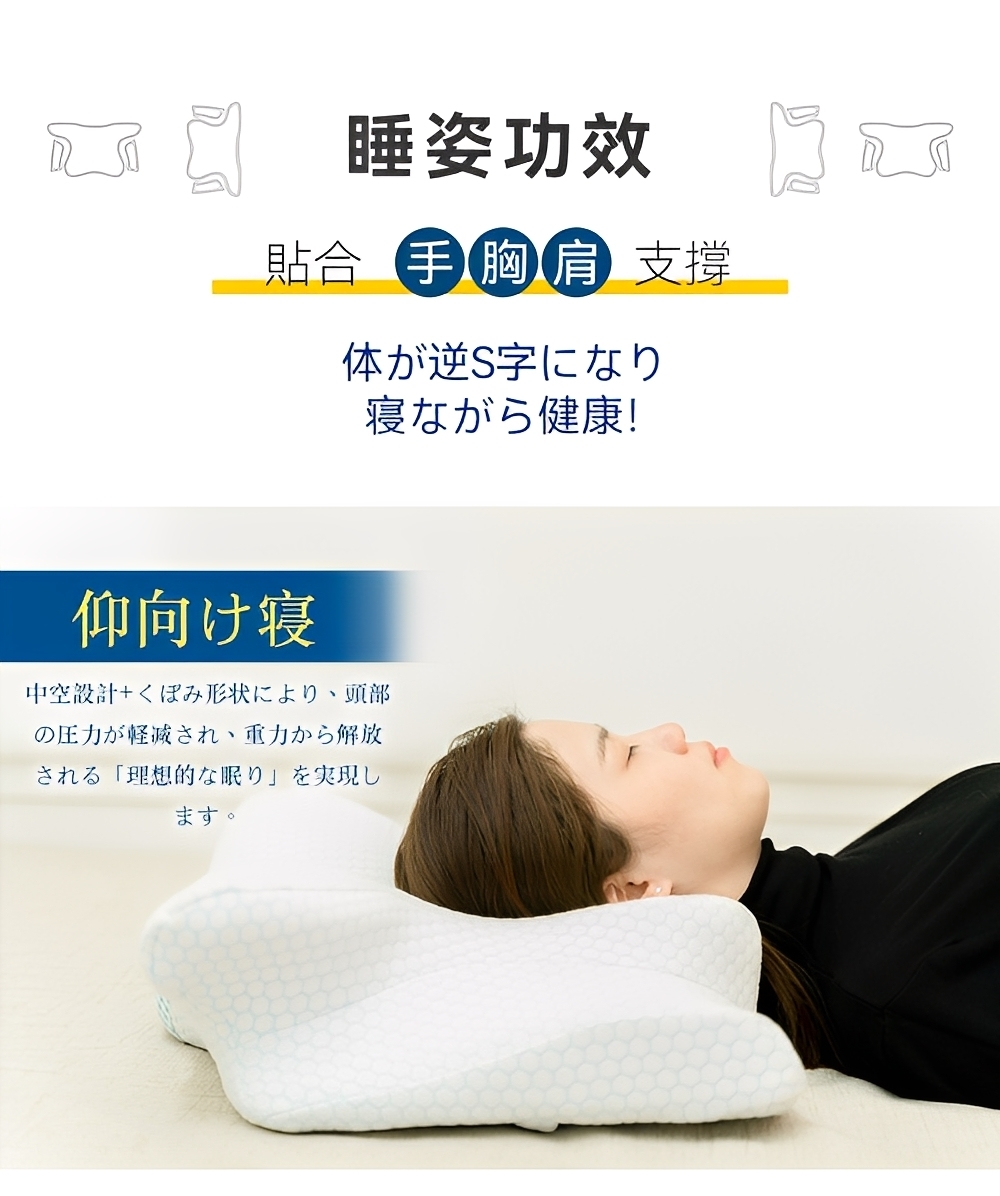 .立體側邊設計,令頭、頸、肩、腰、手臂重心保持平衡,側睡也能呼吸暢通。
