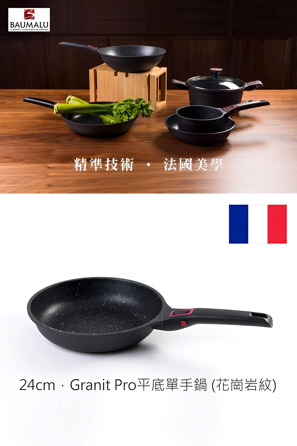 .內容物:Granit Pro花崗岩紋 平底單手鍋-24cm