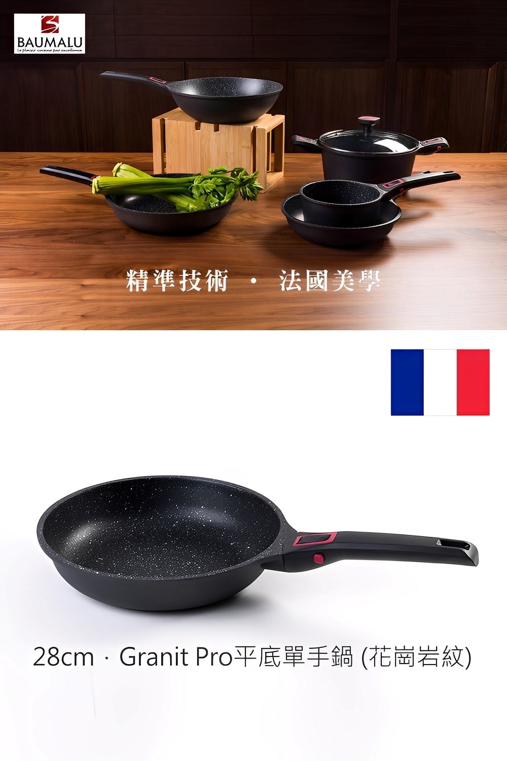 .內容物:Granit Pro花崗岩紋 平底單手鍋-28cm