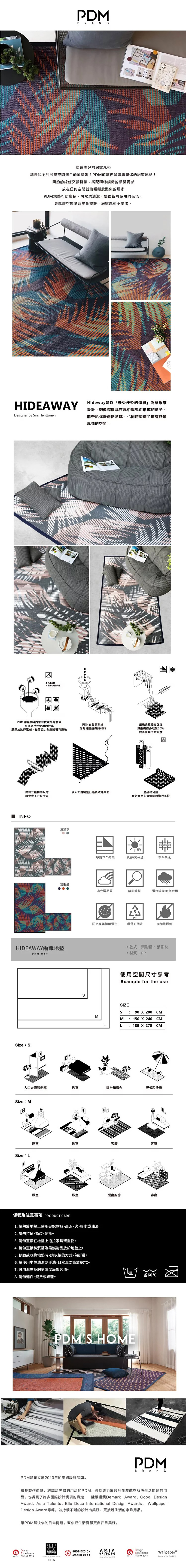 PDM地墊可防塵螨、可水洗清潔,雙面皆可使用的花色,更能讓空間隨時變化擺設,居家風格不受限。