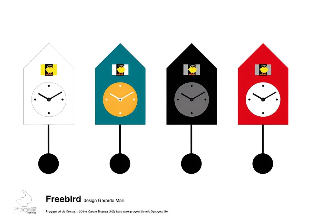 .由 Gerardo Marì 設計的 Freebird 是對經典布穀鳥鐘的諷刺性演變