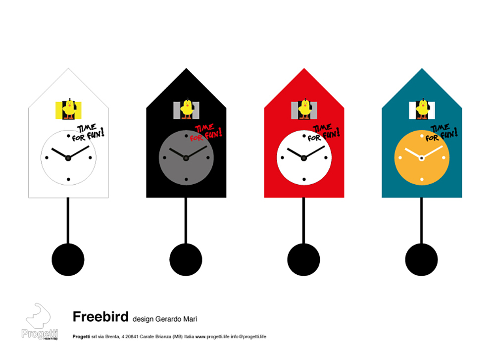 .由 Gerardo Marì 設計的 Freebird 是對經典布穀鳥鐘的諷刺性演變