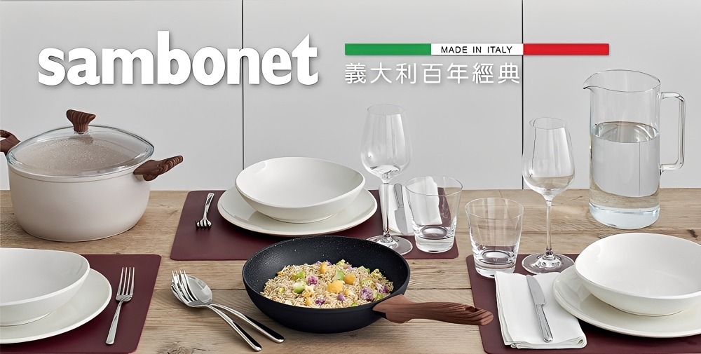Sambonet打造義大利第一批工業電鍍產品,並開啓不鏽鋼扁平餐具生產的新時代。二十世紀初主要為貴族家庭提供商品和服務,自1980年以來不僅專注於陶瓷研究,並將工作技術個性化,不斷探索創新色彩方案,打造簡約形制。1997年,Sambonet加入Paderno集團(專業生產食品工業所需的炊具和廚房器具),因此,Sambonet能夠提供全套餐具和專業廚房器具。
